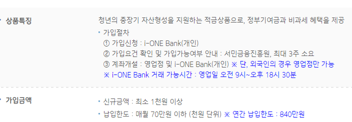 -매월 최대 70만 원 저축하며 연간으로 최대 840만 원까지 저축가능